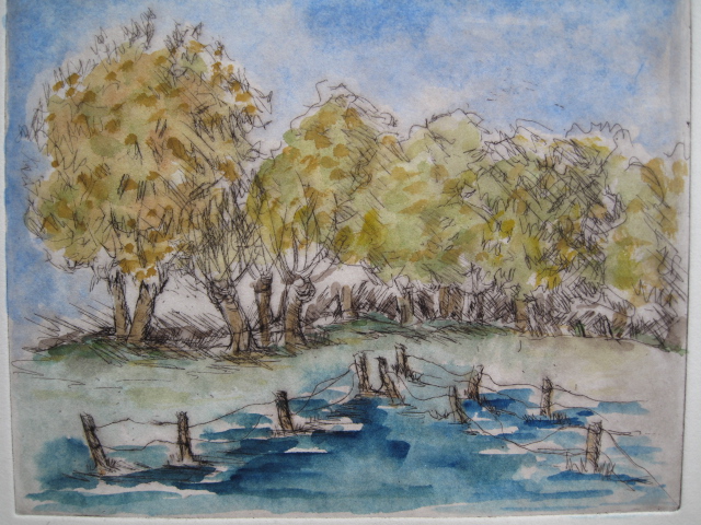 aquarellierte Radierung